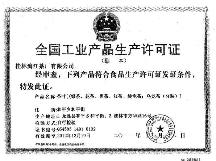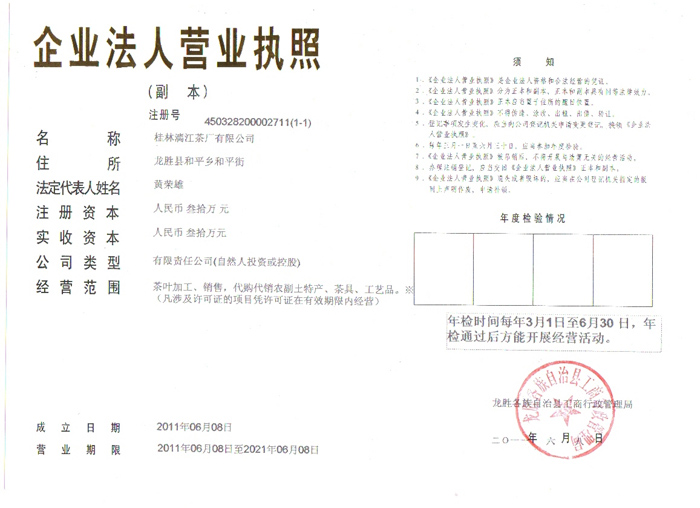 桂林市漓江茶厂有限公司 联系电话:0773-2602554