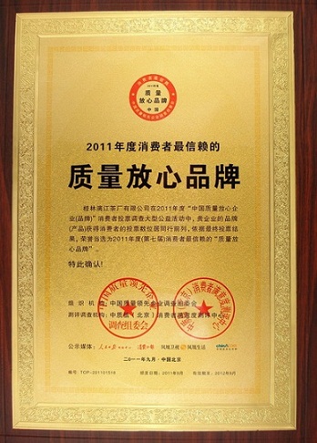 1、2011年“质量放心品牌”牌匾