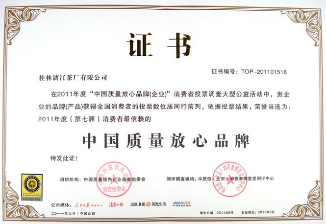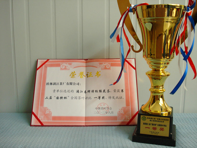 23、2012年漓江春特级桂花茶荣获“国饮杯”全国茶叶评比一等奖