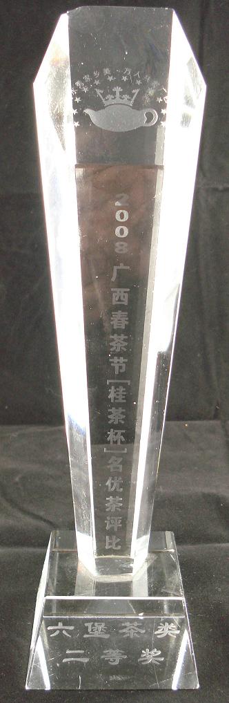 10、“经典六堡”荣获2008年广西春茶节“桂茶杯”六堡茶类二等奖奖杯