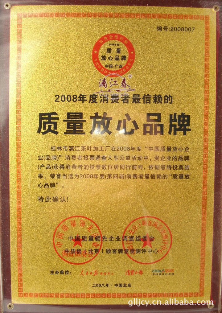 2008年度本厂漓江春系列茶当选消费者最信赖质量放心品牌