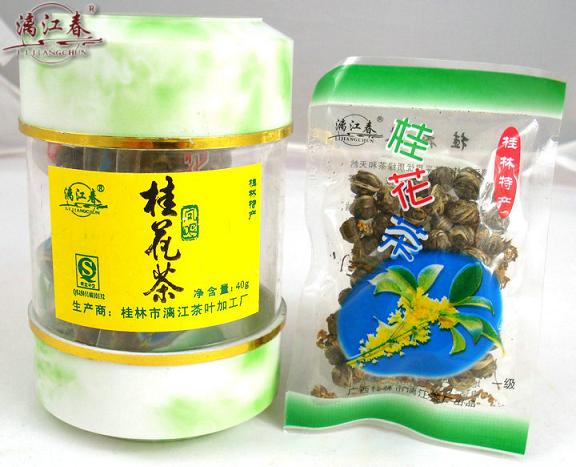 桂花茶是桂林久负盛名的特产名茶,深受国内外人士喜爱。漓江春牌桂花茶是采用漓江春绿茶和天然生态鲜桂花经科学窨制而成。不添加任何化学香料。