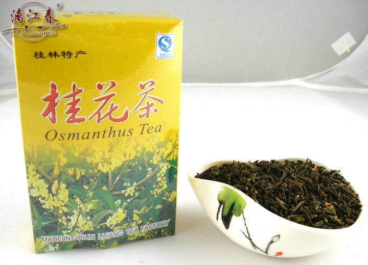 桂花茶是桂林久负盛名的特产名茶,深受国内外人士喜爱。漓江春牌桂花茶是采用漓江春绿茶和天然生态鲜桂花经科学窨制而成。不添加任何化学香料。