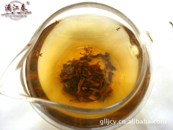 本产品是广西桂林的特产名茶,它采用优质漓江春绿茶和鲜桂花经科学方法精制而成。具有浓郁芬芳的桂花香,汤色黄明,滋味醇厚。是天然健康饮品。