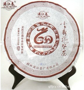 云鼎龙脊茶系采用生长于龙胜县和平乡、江底乡等高寒山区野生龙脊群体种古树茶为原料,由桂林漓江茶厂工程师黄荣雄先生精心研发,利用龙胜天然生态的山泉水作为发酵用水,吸取了龙胜气候四季分明之灵气,缔造了漓江春牌云鼎龙脊茶“红、浓、醇、陈”的优质六堡茶品质。此茶专为龙胜各族自治区县成立60周年县庆而研制。