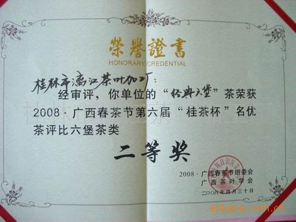 荣获2008广西春茶节桂茶杯名优茶评比二等奖。